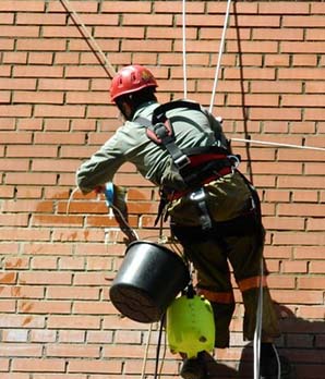 Для того, чтобы помыть окна балконов и лоджий на верхних этажах высотных зданий и фасады домов в труднодоступных местах работники верхолазы используют специальное альпинистское снаряжение и веревки. Оно применяется в целях безопасности верхолазов и служит для них надежной страховкой во время выполнения работ на высоте.