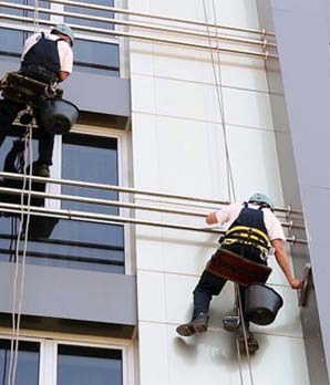 Клининговая компания оказывает услуги по очищению окон производственных и жилых построек, бизнес-центров, коттеджей и офисных строений любого уровня сложности и на любой высоте методом промышленного альпинизма.