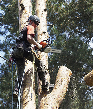Спиливание деревьев лучше всего будет доверить профессиональному арбористу. При своей работе им используется специализированное оборудование и техника.